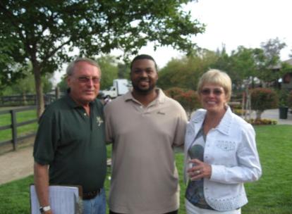 | Sean pictured with Stephanie and Travis Hansen of Travis Training Center. Daneisha and Sean took a visit to Utah to see The Hansens' newly imported stallion *LA Karat (WH Justice x LA Kalahari). |